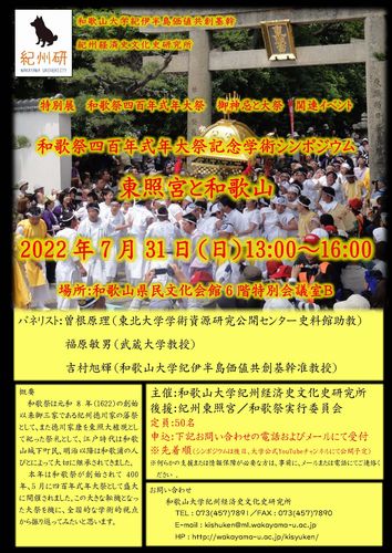 【紀州研】2022度特別展関連イベント 和歌祭四百年式年大祭記念学術シンポジウム「 東照宮祭礼と和歌山」について